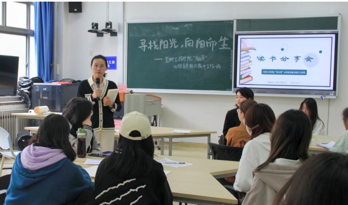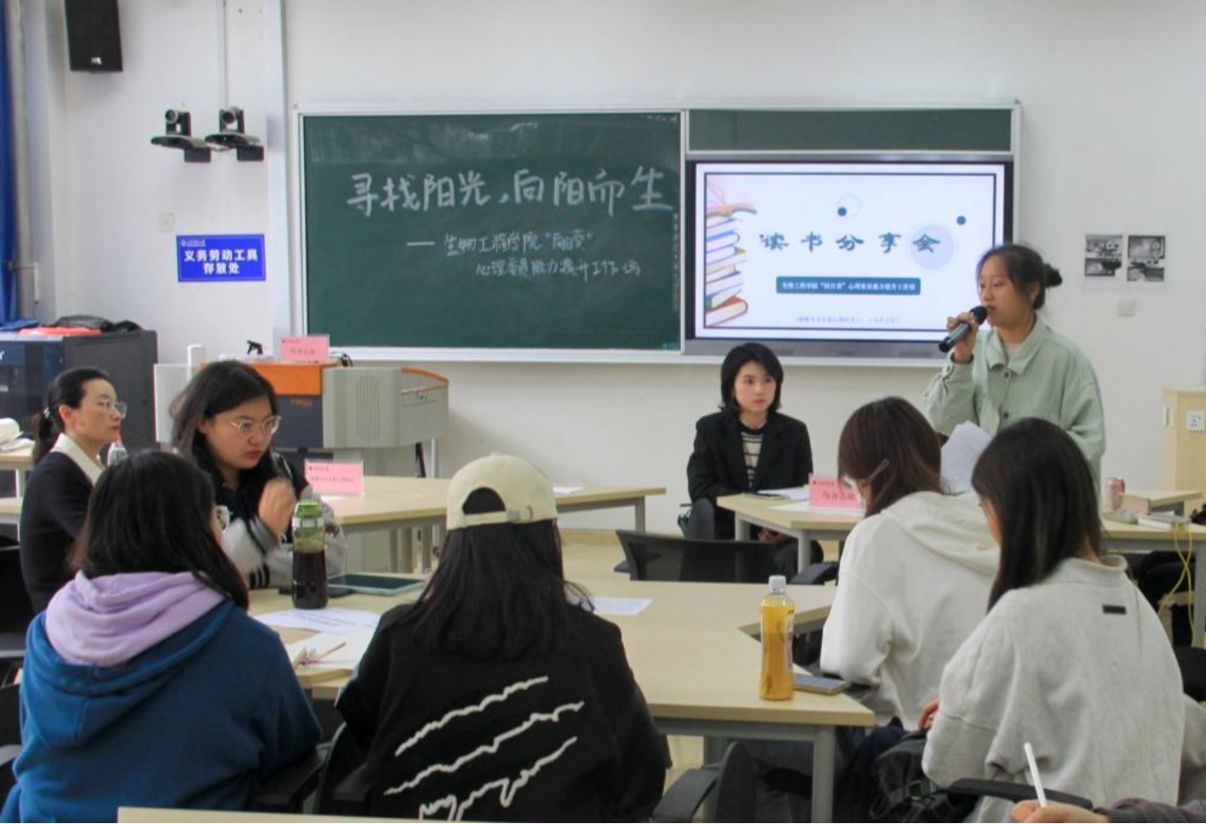 最是书香能致远,腹有诗书气自华,1995年,联合国教科文组织宣布4月23日为“世界读书日”。在第28个世界读书日来临之际,生物工程学院为促进学生阅读行动不断深化,以学促发展、促提升,进一步提高心理委员对于心理健康的认识,促进其岗位专业素养积累,4月21日中午,学院于滨海中校区5号楼206研讨教室开展了“读书交流会”活动。学校大学生心理健康教育与咨询中心教师王荔受邀作为读书代表参会并做分享,生物工程学院全体心理委员参会。读书会由2020级辅导员、学院心理专项负责老师周丽媛主持。