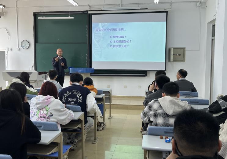 为全面落实立德树人根本任务,深入贯彻学校第四次党代会精神,向纵深推进“先锋计划”,发挥典型示范的激励引领作用,帮助生物学子制定科学的备考规划、掌握高效的学习方法,营造良好的学习氛围,生物工程学院于4月10日在滨海中校区3-216教室开展考研备考规划指导讲座。生物工程学院张成林教授、2021级本科生考研经验分享代表张子楠、田怡以及生物工程学院准备考研学生参加讲座,会议由2022级本科生辅导员凡会强主持。
