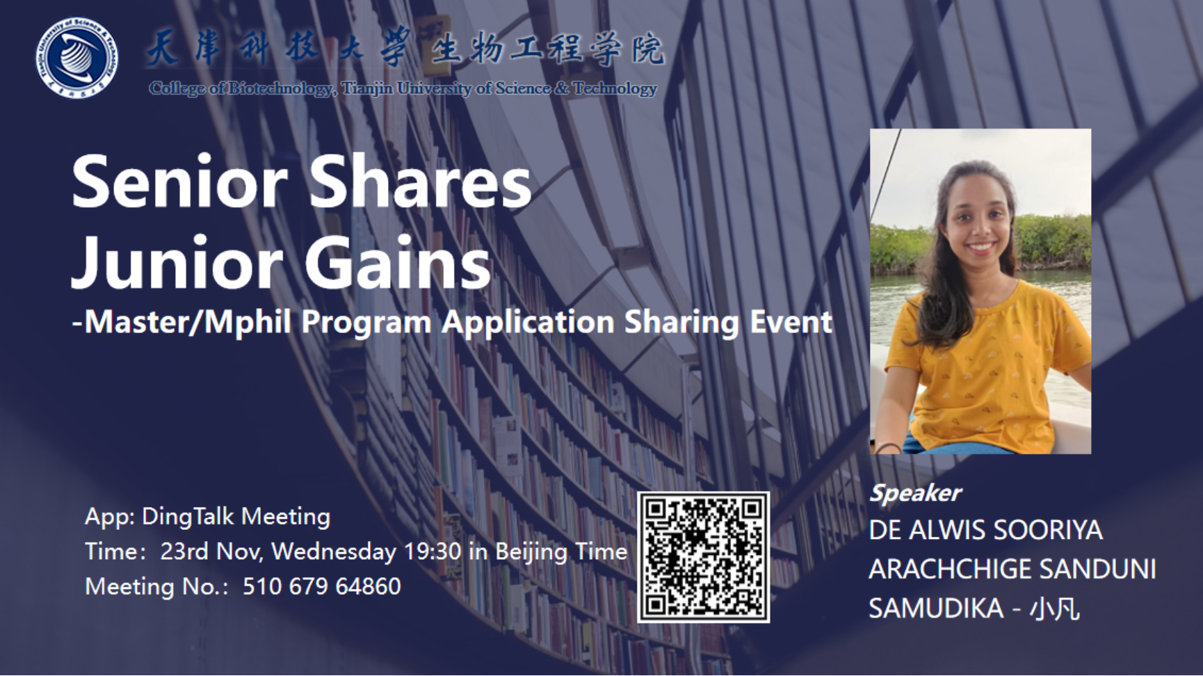 本期邀请生物工程学院斯里兰卡本科生DE ALWIS SOORIYA ARACHCHIGE SANDUNI SAMUDIKA (中文名:小凡)分享“如何在中国顶尖大学和研究所申请硕士项目”。报告以在线形式开展,生物工程学院2019级留学生本科班参加,同时向全学院本科生开放。国际化教研室副主任刘莹老师主持会议。