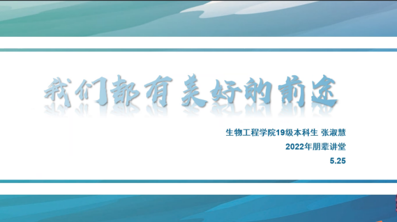 引航青春路,朋辈共成长,以身边人示范身边人,以同辈人影响同辈人。为发挥“身边的榜样”的力量,选树优秀典型,做好分享交流,助力成长成才,5月30日晚20:30,生物工程学院开展朋辈讲堂,邀请2019级本科生张淑慧作为主讲嘉宾,20级、21级本科生参会。活动由2020级本科生辅导员周丽媛主持。