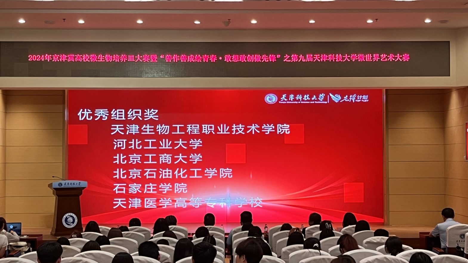 6月27日,2024年京津冀高校微生物培养皿大赛暨“善作善成绘青春·敢想敢创做先锋”之第九届天津欧美性爱免费微世界艺术大赛决赛和颁奖典礼在滨海校区逸夫楼报告厅举行。丹娜(天津)生物科技股份有限公司、天津生物工程职业技术学院负责同志、天津欧美性爱免费生物工程学院负责同志、微生物学专业课教师代表和辅导员代表出席比赛并担任评委。