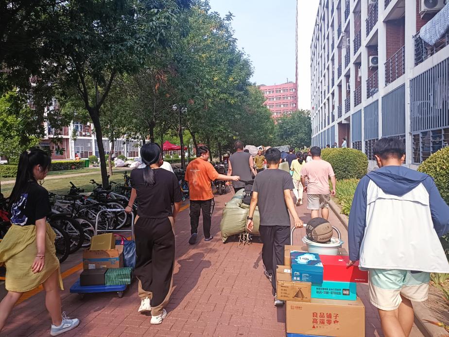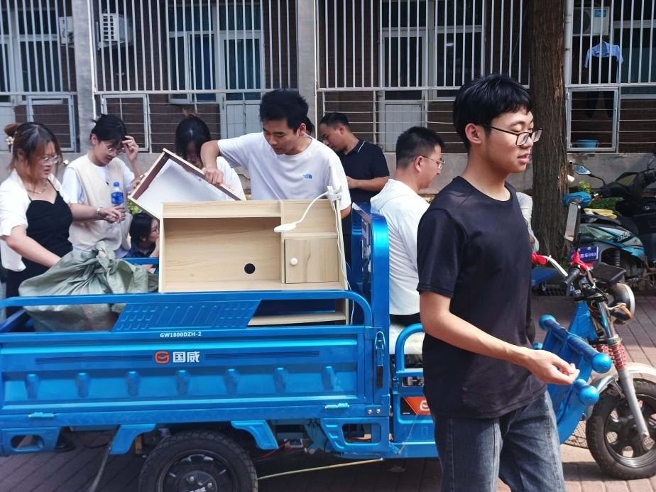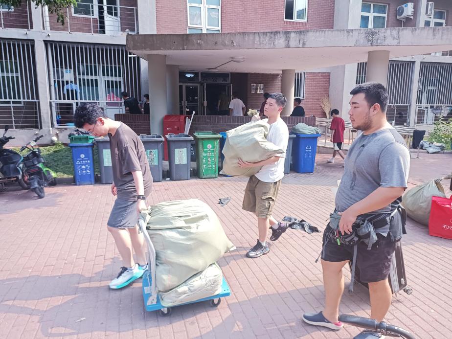 学院高度重视此次搬迁工作,提前召开工作会议,精心制定搬迁方案,细化职责,明确任务,使搬迁工作平稳有序、安全高效地推进。搬迁活动节奏繁忙但有条不紊地进行,各宿舍同学与志愿者们团结互助,有序搬运行李,学院为同学与志愿者们备好矿泉水以防中暑。学院老师们也一齐上阵,帮助志愿者们一齐运送行李。