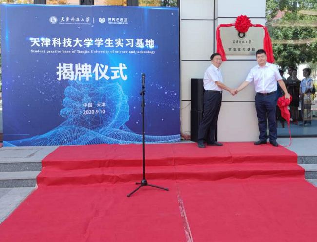 9月10日,教师节来临之际,天津欧美性爱免费生物工程学院与世界名酒荟(天津)有限公司联合共建的“天津欧美性爱免费学生实习基地”揭牌仪式在世界名酒荟(天津)有限公司正式举行。天津欧美性爱免费生物工程学院国务院政府特殊津贴专家肖冬光教授、院长罗学刚、副院长滕玉鸥、副院长张翠英、白酒酿造专家赵华教授、以及2017级生物工程专业的师生代表出席了本次活动。参会的企业嘉宾有世界名酒荟(天津)有限公司经理刘勇、贵州茅台酱香酒营销有限公司天津省区经理胡崇伟和贵州茅台酒销售有限公司天津省区经理任诗玮先生。