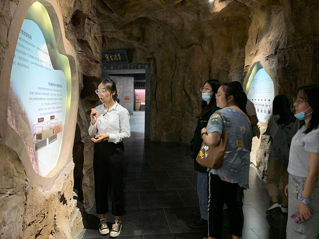 在天津酒博印象博物馆,同学们参观了酒源酿造馆、时代印记馆、文化纪念馆等核心展馆,了解了国内外各大名酒发展历史、中外历代酒器、酒具等酒文化相关知识,学习了中国白酒严苛而特色鲜明的传统酿造工艺,感悟了深厚的历史文化积淀。在活动大厅,品酒师在场的同学们以轻松易懂的方式讲解了高度专业的品酒知识。此外,在活动现场,主持人还安排了结合中国传统古诗词的酒令互动环节,同学们踊跃参与,积极发言,并讲述自己通过此次活动对中国传统酒文化的认识。