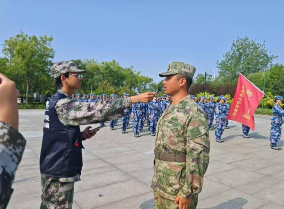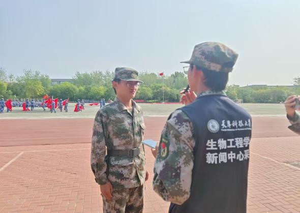 比秋雨更沁润人心的是生物工程学院辅导员任艳萍老师和吕彦楠老师烈日下的陪伴,风雨中的坚守,她们身着整洁的军装,眼神中透露出坚定与热情。