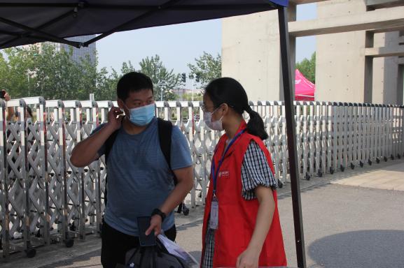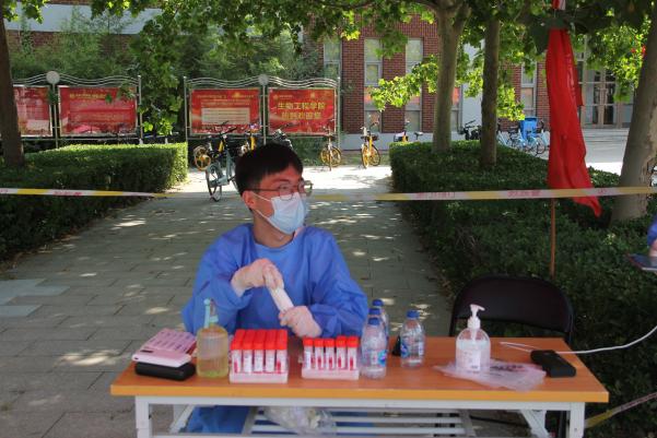 为保学生防疫安全,学院安排志愿者们在新生核酸检测点位进行轮班值守,指导下载软件、录入信息、分发试管,重复成百上千次的动作,为新生们入校第一检提供便利。