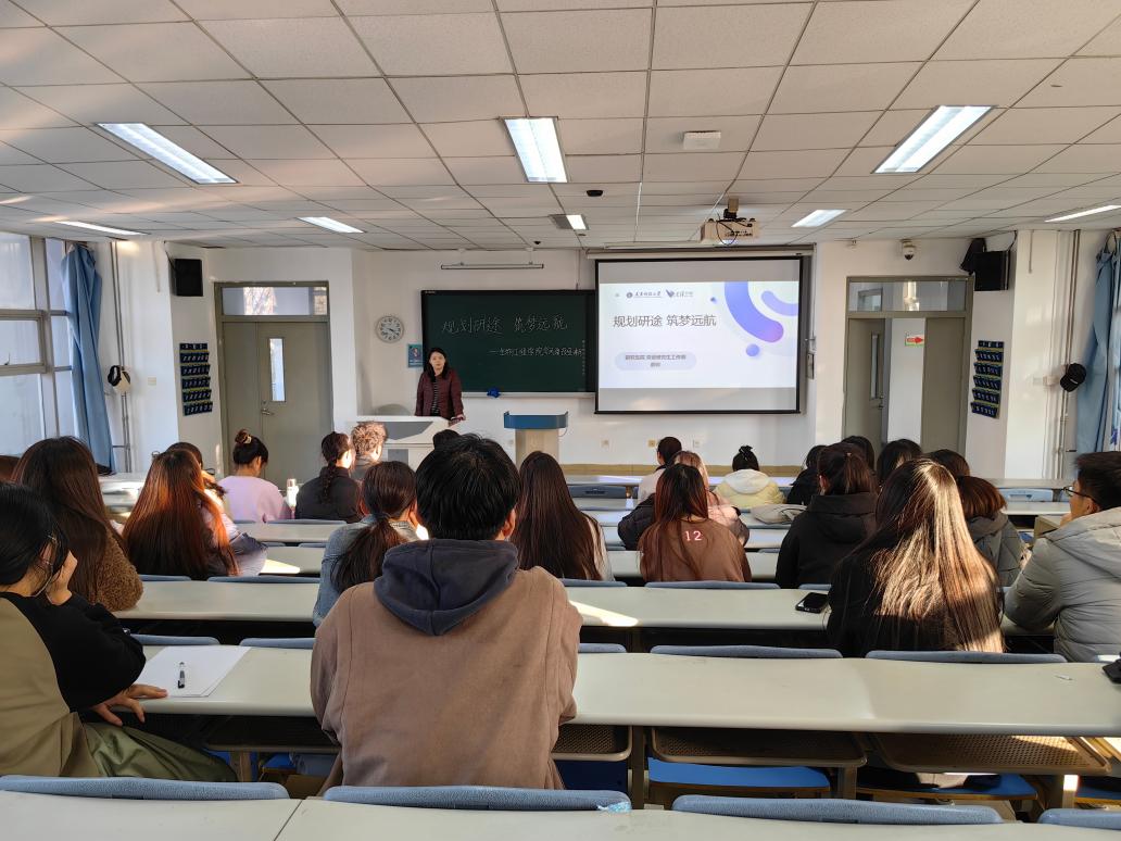 11月22日下午,生物工程学院于滨海中校区3-213教室组织召开“规划研途 筑梦远航”职业生涯规划讲座,由研究生院党委研究生工作部蔡铎老师主讲,生物工程学院2024级研究生辅导员周丽媛与研究生各年级学生代表参会。
