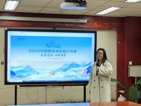 11月20日,中国酒业协会葡萄酒分会主办“龙行高校”2024年中国葡萄酒校园公开课在线上线下同步开讲。我校作为众多承办单位之一,组织学院师生在滨海校区2-208会议室参与了本次以“高原净土,心中日月”为主题的公开课活动。