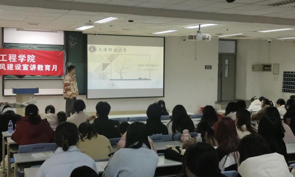 为进一步营造浓厚的科研氛围,增进跨学科交流互动性,提升学院研究生们的科研素养。近日,生物工程学院与食品科学与工程学院于9-3阶梯教室联合举办了2024年生物工程学院研究生科学道德与学风建设月主题宣讲第六讲。此次主题宣讲会议汇聚了来自生物工程学院和食品科学工程学院的研究生们,他们分享研究成果和宝贵经验,参会师生们收获颇丰。