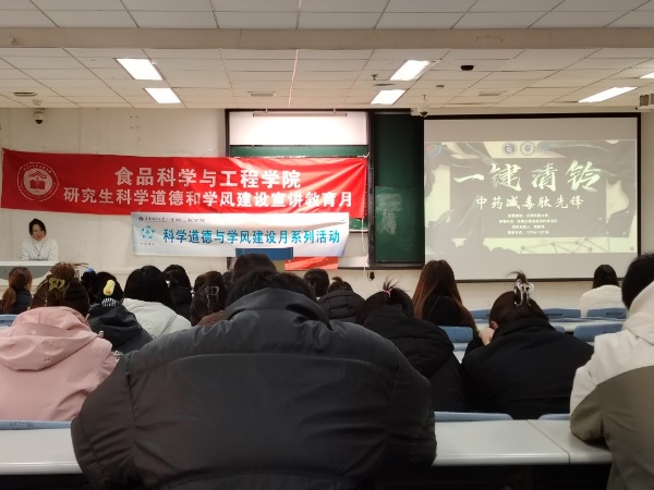 为进一步在学院内弘扬创新精神,助力研究生成长与全面发展,提升研究生科研素养,推动“2024年研究生科学道德和学风建设宣讲教育月”活动的深入开展。近日,生物工程学院与食品科学与工程学院联合举办了本次宣讲会,邀请了中国国际大学生创新大赛(2024)天津赛区高校主赛道银奖获得者栗新尧,开展了一场以“竞赛经历与心得分享”为主题的宣讲活动。